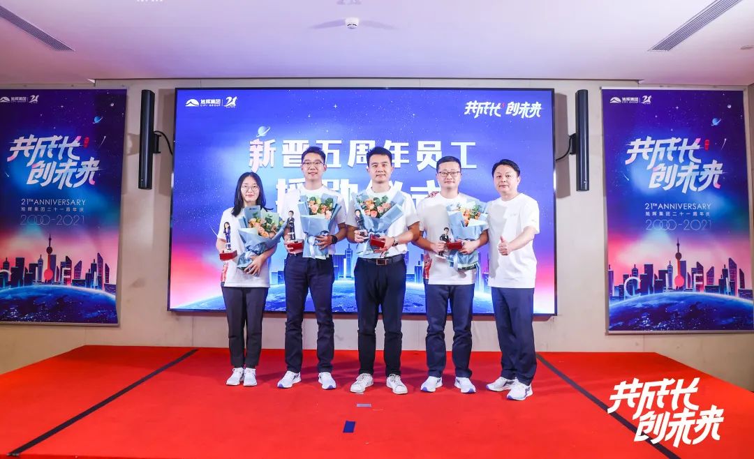 河南旭辉和上海旭辉则为新晋三周年员工和五周年员工送上了鲜花和掌声,精美的花束、简洁而不失心意的仪式为大家带来浓浓的幸福感。亲爱的伙伴们,接下来的5年,也要和旭辉一起加油哦!