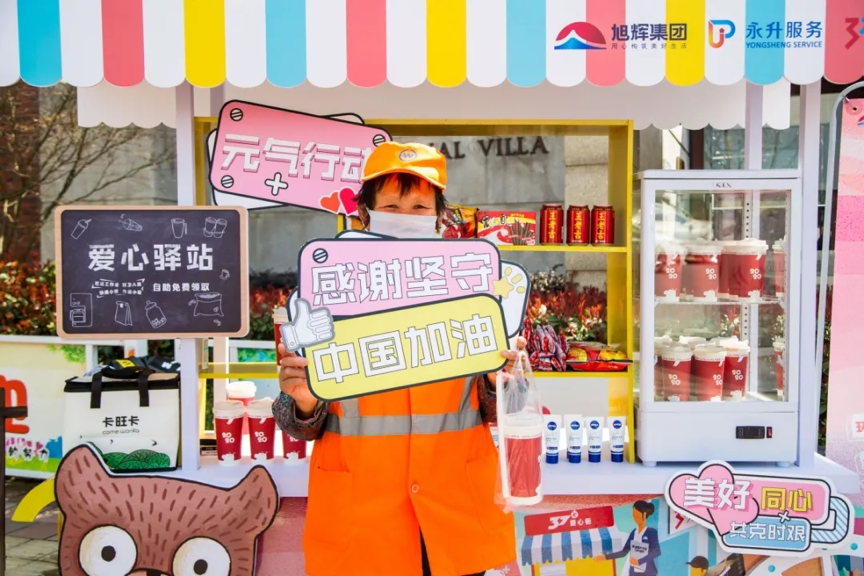 一位环卫阿姨领取了免费的食品和饮料,连连对我们表示感谢。看着她欣慰的笑容,工作人员的心也暖了。我们和业主们一起献上满满爱心,在这里,我们要谢谢您在疫情期间的付出,并希望可以为你前行路上带去满满能量!